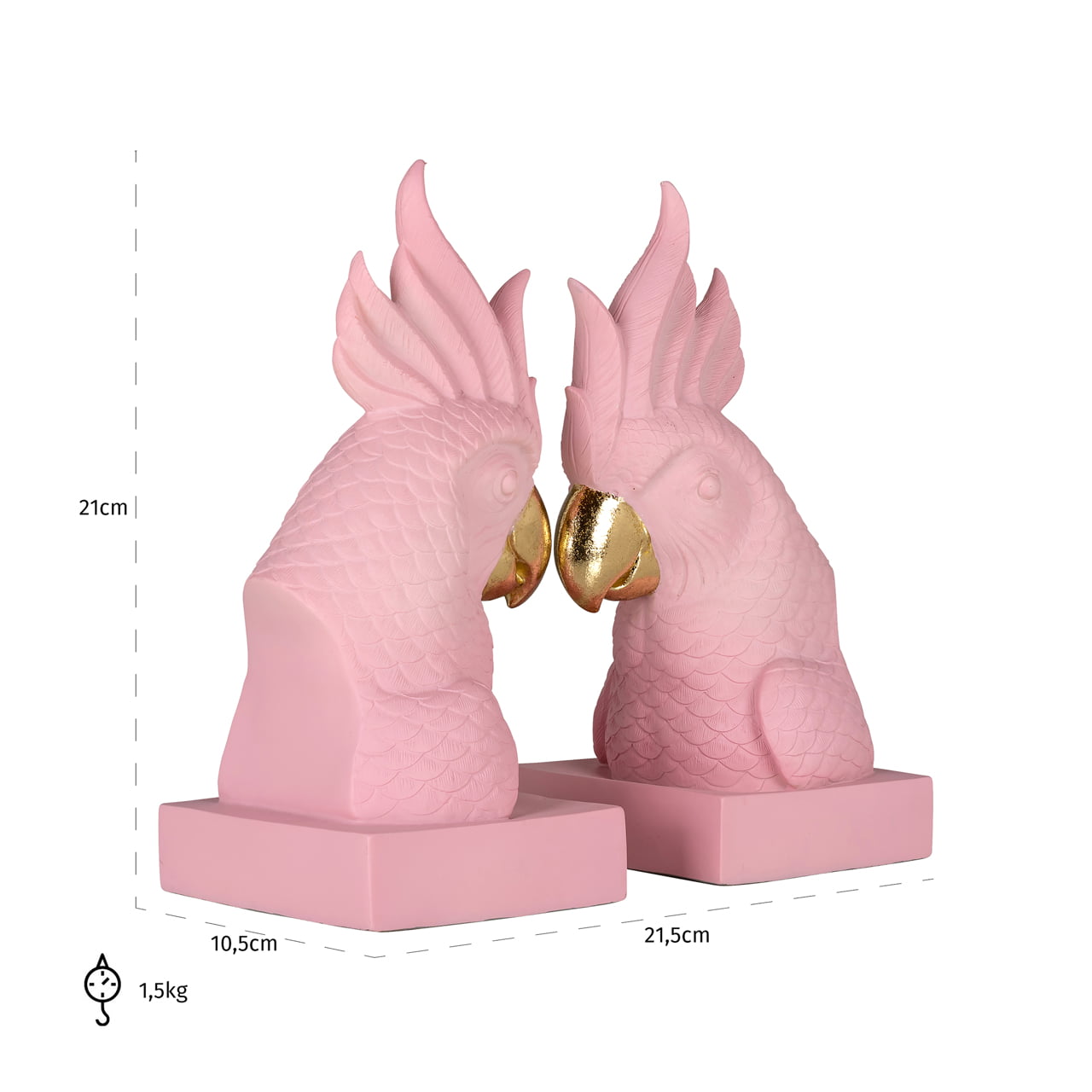 Maak kennis met de opvallende Richmond Boekenstandaard Parrot – een levendige en kleurrijke toevoeging aan je boekenplank. Deze boekenstandaard is roze van kleur en voorzien van twee speelse papagaaien met gouden neuzen.
