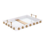 Plaats het dienblad Lisa in jouw woonkamer als prachtige blikvanger op de salontafel, waar je jouw favoriete decoratieve items kunt tentoonstellen. Of gebruik het in de slaapkamer om jouw sieraden en accessoires op een elegante manier te presenteren.