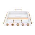 Het dienblad Lisa is gemaakt van stevig ijzer, MDF en glas, waardoor het een duurzame en stijlvolle uitstraling heeft. De combinatie van materialen zorgt voor een unieke look die moeiteloos past bij verschillende decoratiestijlen.