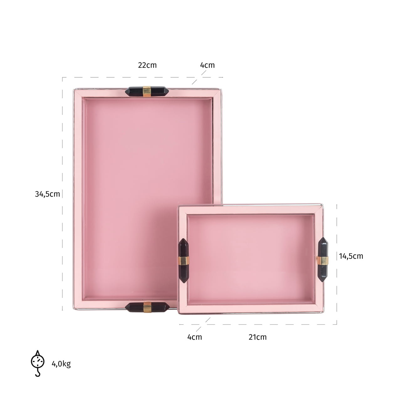 De set van 2 dienbladen Vajen is niet alleen stijlvol, maar ook functioneel. Dankzij de twee verschillende formaten heb je altijd jouw dagelijkse spullen binnen handbereik. Gebruik ze als decoratieve items op jouw salontafel, dressoir of bijzettafel, of gebruik ze om hapjes en drankjes te serveren tijdens gezellige bijeenkomsten.