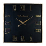 Ontdek de verfijnde elegantie van de Richmond Klok Derial! Met zijn vierkante ontwerp en royale afmetingen van 76 cm x 76 cm, is deze klok een ware eyecatcher in elk interieur. De combinatie van een mat zwarte achtergrond met goudkleurige rand, cijfers en wijzers geeft de klok een klassieke en tijdloze uitstraling.