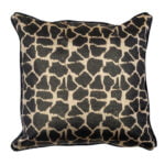 Eén zijde van het kussen is bekleed met een luxueuze giraf print stof in Donna-21175-Giraf 8019 Chocola, terwijl de andere zijde is uitgevoerd in het weelderige zwarte velvet in Quartz Black 800. Deze combinatie van materialen en prints creëert een spannende en harmonieuze mix van texturen die jouw interieur naar een hoger niveau tilt.