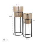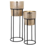Als je jouw interieur wilt verfraaien met een uniek en veelzijdig decoratief accessoire, dan is de Richmond Plantenbak Lowen de perfecte keuze! Deze prachtige set bestaat uit twee goudkleurige aluminium plantenbakken, elk geplaatst op een stevige zwartkleurige standaard. De combinatie van deze materialen zorgt voor een uitzonderlijke robuustheid en duurzaamheid, waardoor de plantenbakken perfect geschikt zijn voor elke decoratieve stijl.