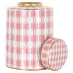 Voeg een vleugje charme en verfijning toe aan uw interieur met de Richmond Pot Aley Klein! Deze betoverende pot met deksel is een absolute eyecatcher in elke kamer. Vervaardigd uit hoogwaardig keramiek en prachtig bewerkt met een sierlijk roze-wit patroon, straalt de pot een gevoel van elegantie en klasse uit. De goudkleurige randen voegen een vleugje luxe toe, waardoor deze pot een waar kunstwerk wordt dat uw inrichting naar een hoger niveau tilt.