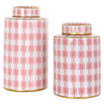 Voeg een vleugje charme en verfijning toe aan uw interieur met de Richmond Pot Aley Klein! Deze betoverende pot met deksel is een absolute eyecatcher in elke kamer. Vervaardigd uit hoogwaardig keramiek en prachtig bewerkt met een sierlijk roze-wit patroon, straalt de Richmond Pot Aley Klein een gevoel van elegantie en klasse uit. De goudkleurige randen voegen een vleugje luxe toe, waardoor deze pot een waar kunstwerk wordt dat uw inrichting naar een hoger niveau tilt. De pot is tevens verkrijgbaar in een grotere variant.
