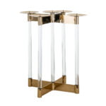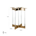 Met een indrukwekkende hoogte van 42 cm biedt deze kandelaar ruimte aan maar liefst vijf kaarsen, waardoor je een warm en sprankelend licht kunt verspreiden in jouw huis. Het samenspel van goudkleurig staal en transparant acryl zorgt voor een fascinerend spel van licht en schaduw, waardoor de kandelaar een magische gloed krijgt.