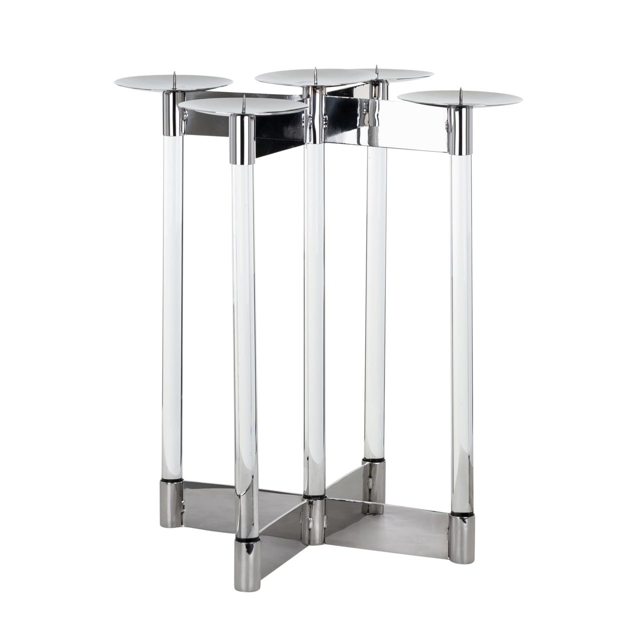 Met een hoogte van 42 cm biedt de Richmond Kandelaar Yaira Zilver voldoende ruimte voor maar liefst vijf kaarsen, waardoor je een warm en sfeervol licht kunt creëren in jouw huis. De combinatie van zilverkleurig staal en transparant acryl zorgt voor een prachtig samenspel van materialen en creëert een schitterende lichtweerkaatsing.