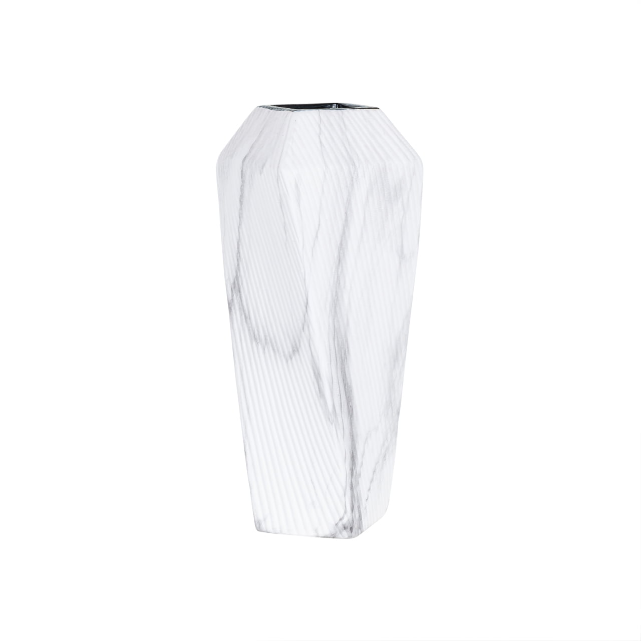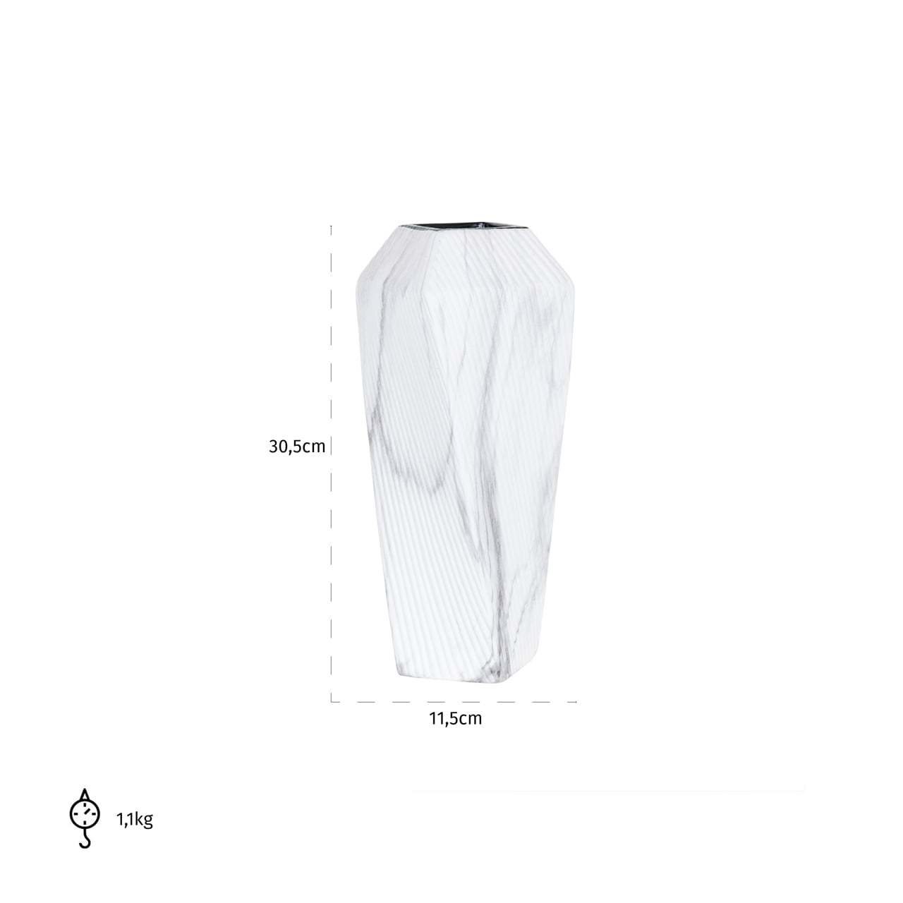 De Richmond Vaas Shani Groot straalt vakmanschap en originaliteit uit. De bijzondere ribbelvorm geeft de vaas een speelse en toch verfijnde uitstraling, terwijl de witte marmerlook een gevoel van luxe en tijdloosheid toevoegt.