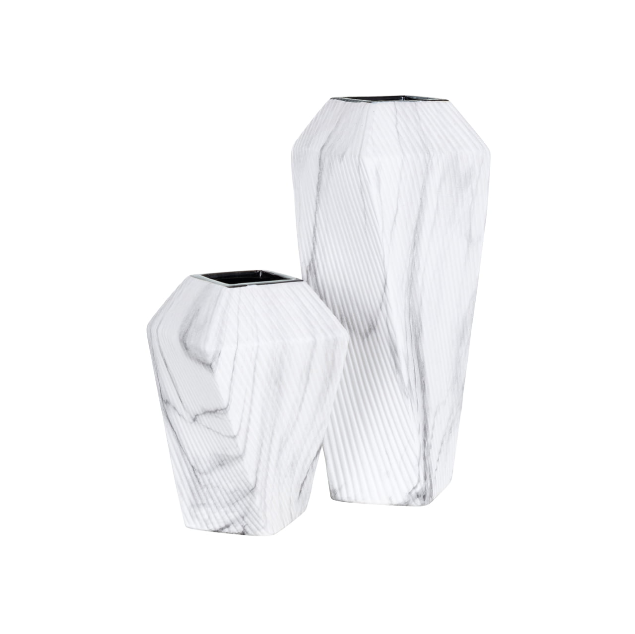 Ontdek de prachtige Richmond Vaas Shani Groot – een keramisch meesterwerk in een elegante witte marmerlook, met een opvallende ribbelvorm die onmiddellijk de aandacht trekt. Deze vaas voegt niet alleen stijl en klasse toe aan jouw interieur, maar voegt ook een unieke en eigentijdse touch toe.