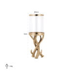 Dit Richmond Windlicht Avius Goud combineert helder glas met een prachtige standaard van goudkleurig aluminium, ontworpen in de elegante vorm van geweien. De samensmelting van het transparante glas en het gouden frame zorgt voor een magisch lichtspel dat de omgeving op een sfeervolle manier verlicht.