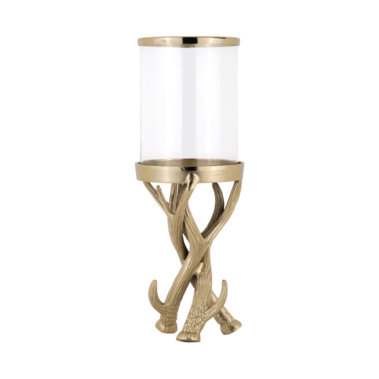 Dit Richmond Windlicht Avius Goud combineert helder glas met een prachtige standaard van goudkleurig aluminium, ontworpen in de elegante vorm van geweien. De samensmelting van het transparante glas en het gouden frame zorgt voor een magisch lichtspel dat de omgeving op een sfeervolle manier verlicht.