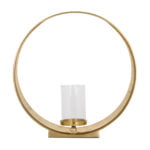 Het Richmond Windlicht Ruan Goud Groot is niet alleen een accessoire, maar een statement. Het indrukwekkende design en de hoogwaardige materialen maken dit windlicht tot een blikvanger in elke kamer. Het glazen omhulsel en het goudkleurige aluminium frame met opengewerkte cirkel creëren een betoverend spel van licht en schaduw, wat resulteert in een warme en uitnodigende sfeer.