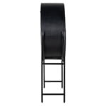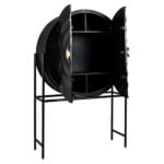 De zwarte ronde kast, met het uiterlijk van een oog, is het middelpunt van deze barkast. Het creëert een interessant visueel element en geeft een moderne en artistieke touch aan het geheel. Het ontwerp is zowel functioneel als decoratief, waardoor je je drankjes, glazen, of andere items georganiseerd kunt opbergen en tegelijkertijd een prachtig pronkstuk kunt tonen.