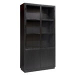 De kast heeft twee deuren aan de bovenkant, voorzien van zwart metalen frame en glazen panelen. Dit geeft een modern en industrieel accent aan het ontwerp, en biedt tegelijkertijd een stijlvolle manier om je mooie servies en decoratieve items tentoon te stellen. Achter de glazen deuren kun je je mooiste servies en glazen uitstallen, terwijl ze toch beschermd blijven tegen stof en vuil.