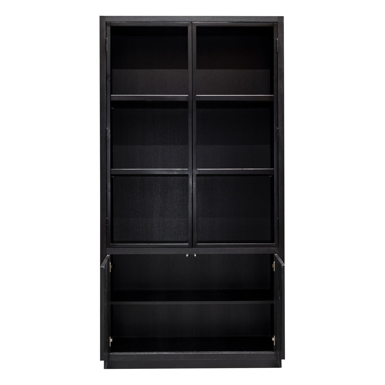 Het zwart fineer eiken geeft de kast een warme en luxe uitstraling. Het houtfineer heeft een natuurlijke nerf en textuur, waardoor elke kast uniek is. Het zwarte eiken past goed bij verschillende interieurstijlen, van modern tot klassiek, en kan gemakkelijk worden gecombineerd met andere meubelstukken.