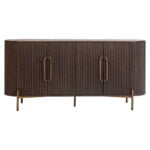 Kies voor het Richmond Dressoir Luxor 4-deurs en geniet van een prachtig meubelstuk met een uniek design. Met zijn brushed gouden onderstel en grepen, kleur donker bruin, oak materiaal, ronde vormen, houten ribbel patroon en vier deuren is dit dressoir zowel functioneel als decoratief. Creëer een sfeervolle en luxe uitstraling in je interieur met het Richmond Dressoir Luxor 4-deurs.
