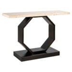 Het tafelblad van de Richmond Avalon Wandtafel is gemaakt van natuurstenen travertine, wat zorgt voor een prachtige en natuurlijke uitstraling. Elk stuk travertine is uniek, met zijn eigen kleurvariaties en aderen, waardoor elke wandtafel een exclusief karakter heeft. Het tafelblad heeft een ruime afmeting van 130 x 40 cm, waardoor er voldoende ruimte is om decoratieve items, foto’s of andere persoonlijke bezittingen tentoon te stellen.