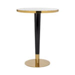 De zwarte poot van de Richmond Bartafel Osteria zorgt voor stabiliteit en stevigheid. Het contrasteert mooi met het gouden frame en voegt een vleugje moderniteit toe aan het ontwerp. Deze combinatie van kleuren en materialen maakt de tafel veelzijdig en gemakkelijk te combineren met andere meubelstukken en decoratieve elementen.