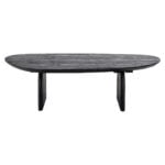 Het zwarte mango hout geeft de salontafel een moderne en stoere uitstraling. Mango hout is duurzaam en heeft een unieke nerfstructuur, waardoor elke salontafel zijn eigen karakter heeft. Het organische ontwerp van de tafel zorgt voor een speels en natuurlijk element in je interieur.