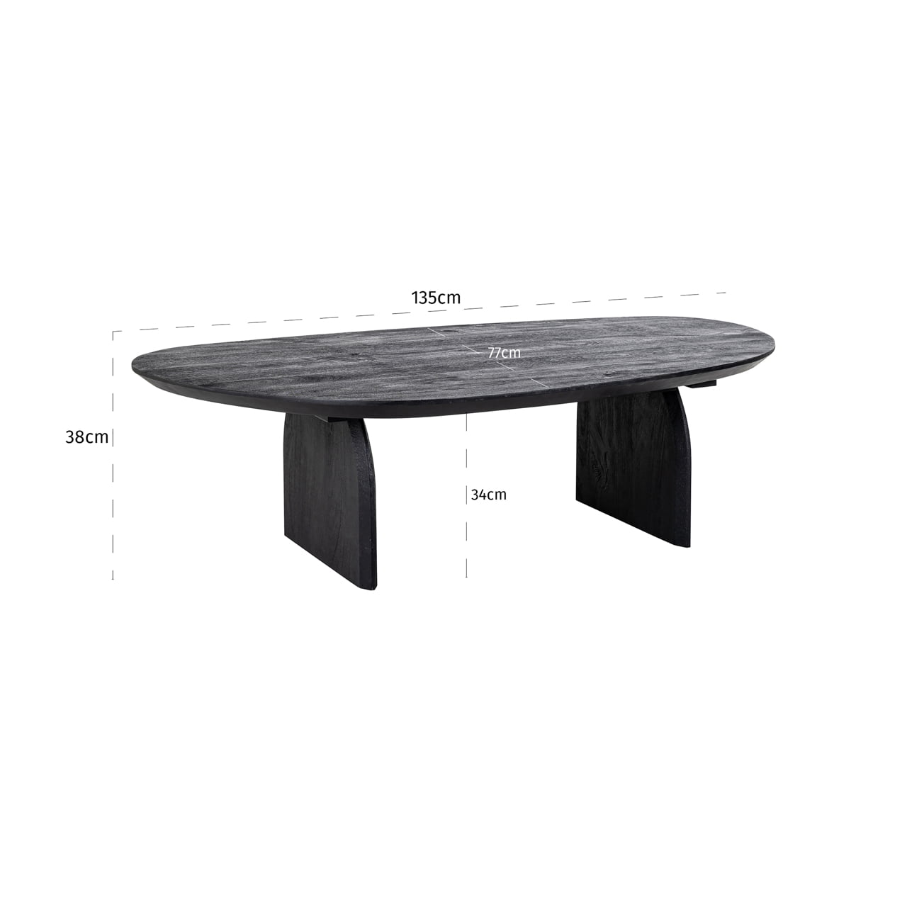 Het zwarte mango hout geeft de salontafel een moderne en stoere uitstraling. Mango hout is duurzaam en heeft een unieke nerfstructuur, waardoor elke salontafel zijn eigen karakter heeft. Het organische ontwerp van de tafel zorgt voor een speels en natuurlijk element in je interieur.