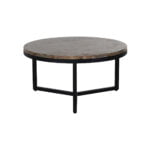 Het onderstel van de salontafel is uitgevoerd in zwart, wat zorgt voor een mooi contrast met het bruine marmeren blad. Het zwarte onderstel is stevig en stabiel, waardoor de salontafel duurzaam is en lang meegaat.