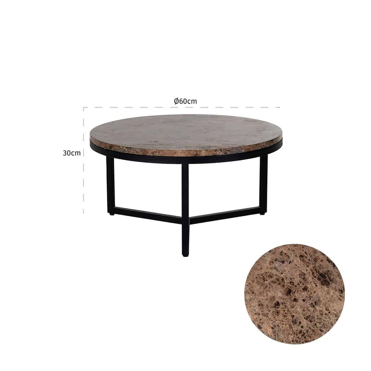 De Richmond salontafel Orion is een elegante toevoeging aan je woonkamer. Met zijn afmetingen van 60 cm in diameter en een rond marmeren blad in een prachtige bruine kleur, straalt deze salontafel stijl en klasse uit.