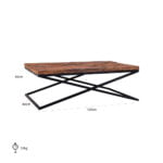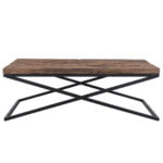 De Industrial Kensington salontafel is vervaardigd van gerecycled hout, wat niet alleen bijdraagt aan een milieubewuste keuze, maar ook zorgt voor een authentieke en robuuste uitstraling. Het zwart stalen onderstel geeft de tafel een industriële touch en zorgt tevens voor een stevige basis.