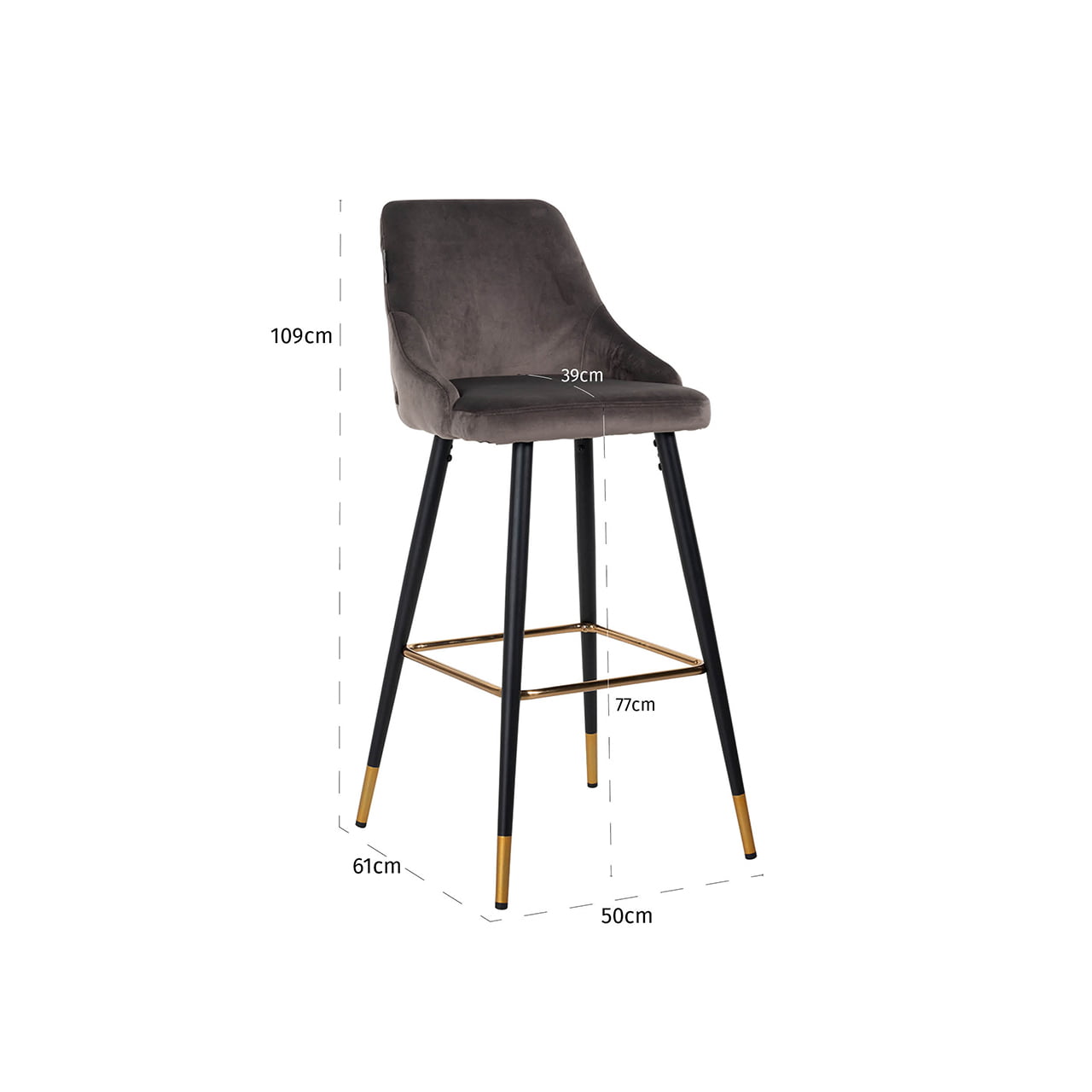 Transformeer je interieur in een oase van elegantie en luxe met de Richmond Barstoel Imani Stone in stoer grijs fluweel. Deze barstoel is een perfecte mix van verfijning, comfort en stijl, waardoor het een opvallende toevoeging is aan elke ruimte. De barstoel is tevens verkrijgbaar in de volgende uitvoeringen: Groen Velvet, Khaki Velvet en Zwart Velvet.