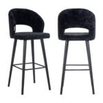 De barstoel is bekleed met de luxueuze stof Bergen 809 zwart chenille, wat zorgt voor een elegante uitstraling. Het chenille-materiaal voelt zacht aan, waardoor je kunt genieten van een comfortabele zitervaring. Bovendien is de stof duurzaam en gemakkelijk te onderhouden, zodat je langdurig kunt genieten van de prachtige uitstraling van de barstoel.