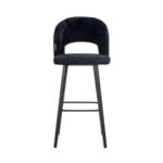 Het zwart stalen onderstel van de barstoel geeft een moderne en industriële touch aan het geheel. Het slanke ontwerp zorgt voor een stijlvolle en stabiele basis. Het zwarte staal vormt een mooi samenhang met de luxe zwarte bekleding en creëert een eigentijdse uitstraling.