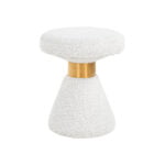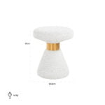 De poef heeft een diameter van 41 centimeter, waardoor hij perfect is om je voeten op te laten rusten na een lange dag of als extra zitplaats voor gasten. Het goudkleurige detail aan de onderkant van de poef voegt een vleugje glamour toe en geeft een luxe uitstraling aan het geheel.