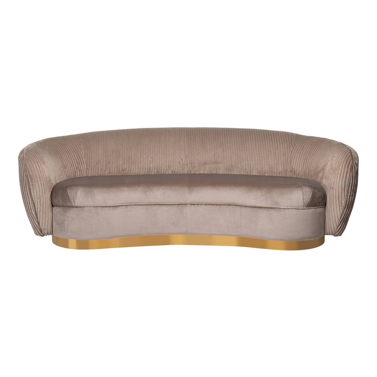 Wat de Waylon bank echt bijzonder maakt, is de ribstof op de rugleuning. Dit detail geeft de bank een speels en trendy karakter en zorgt voor een interessant contrast met de gladde fluwelen bekleding. Het is een perfecte mix van texturen die de bank een unieke uitstraling geeft.