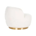 Het goudkleurige onderstel van de draaifauteuil voegt een vleugje glamour en elegantie toe aan het geheel. Het creëert een chique en stijlvolle look die de aandacht trekt en een statement maakt in elke ruimte. Het goudkleurige onderstel vormt ook een prachtig contrast met de witte furry stof, waardoor de fauteuil een echt blikvanger wordt.