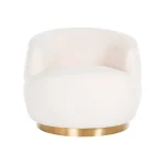 De Richmond Draaifauteuil Teddy Wit Furry is een trendy en luxueus meubelstuk dat je interieur naar een hoger niveau tilt. Met zijn hoogwaardige Himalaya 900 wit furry stof en goudkleurig onderstel voegt deze draaifauteuil niet alleen comfort toe, maar ook een vleugje glamour aan elke ruimte. Of je nu een knusse leeshoek wilt creëren in je woonkamer of een opvallend accent wilt toevoegen aan je slaapkamer, de Richmond Draaifauteuil Teddy Wit Furry is de perfecte keuze.