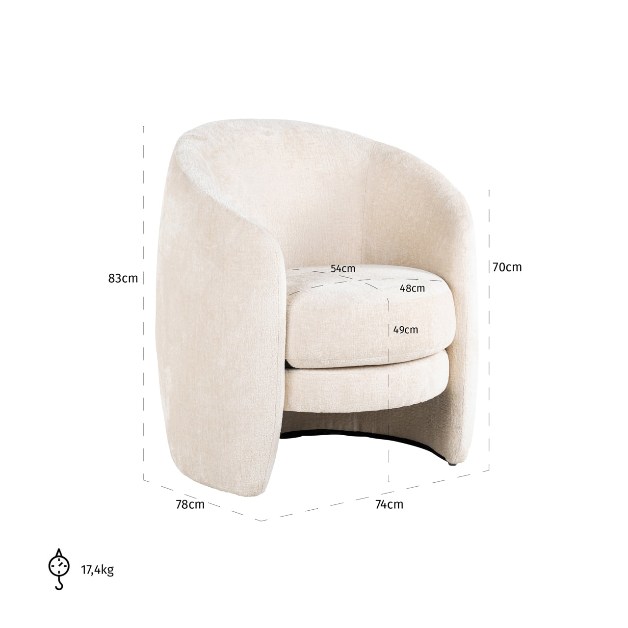 Deze fauteuil is bekleed met de hoogwaardige Bergen 900 Wit Chenille stof, die niet alleen heerlijk zacht aanvoelt, maar ook een tijdloze uitstraling heeft. De heldere witte kleur voegt een vleugje frisheid en verfijning toe aan de fauteuil, waardoor hij moeiteloos past bij elke interieurstijl. Bovendien is de stof duurzaam en gemakkelijk te onderhouden, zodat je lang van deze fauteuil kunt genieten.