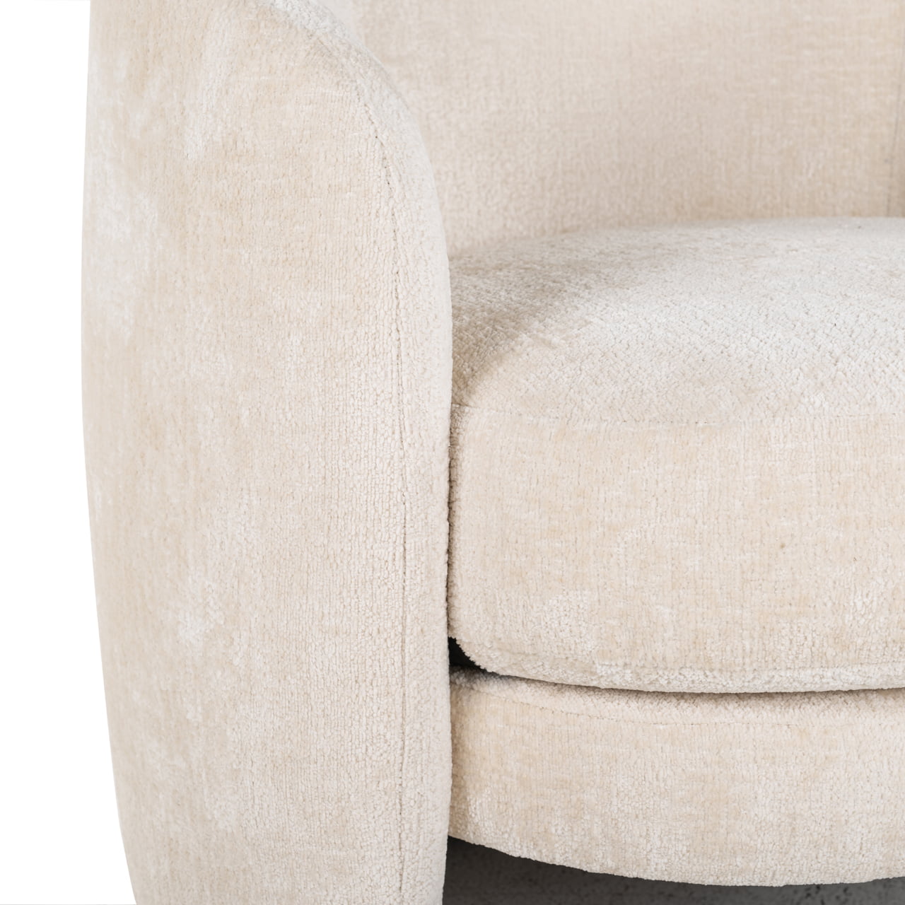 Naast de witte chenille stof is de Richmond Fauteuil Fenna ook verkrijgbaar in de prachtige zandkleurige furry stof. Met de zand furry stof voeg je een speels en knus element toe aan je interieur. Bovendien is er een bijpassende poef verkrijgbaar, waardoor je je ontspanningsruimte compleet kunt maken met een perfect bijpassende set.