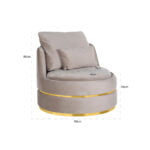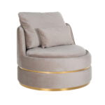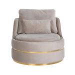 De goudkleurige details van de fauteuil voegen een vleugje glamour toe. De goudkleurige poten en andere accenten creëren een elegante en luxe sfeer. Deze details vormen een prachtig contrast met de warme khakikleur van de stof en voegen een vleugje warmte en stijl toe aan de fauteuil.