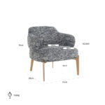 De zwarte boho stof heeft een opvallend gemêleerd patroon en is grof geweven, waardoor het een levendige en textuurrijke look heeft. Het voegt een speels en nonchalant element toe aan de fauteuil en geeft je interieur een onderscheidend karakter.