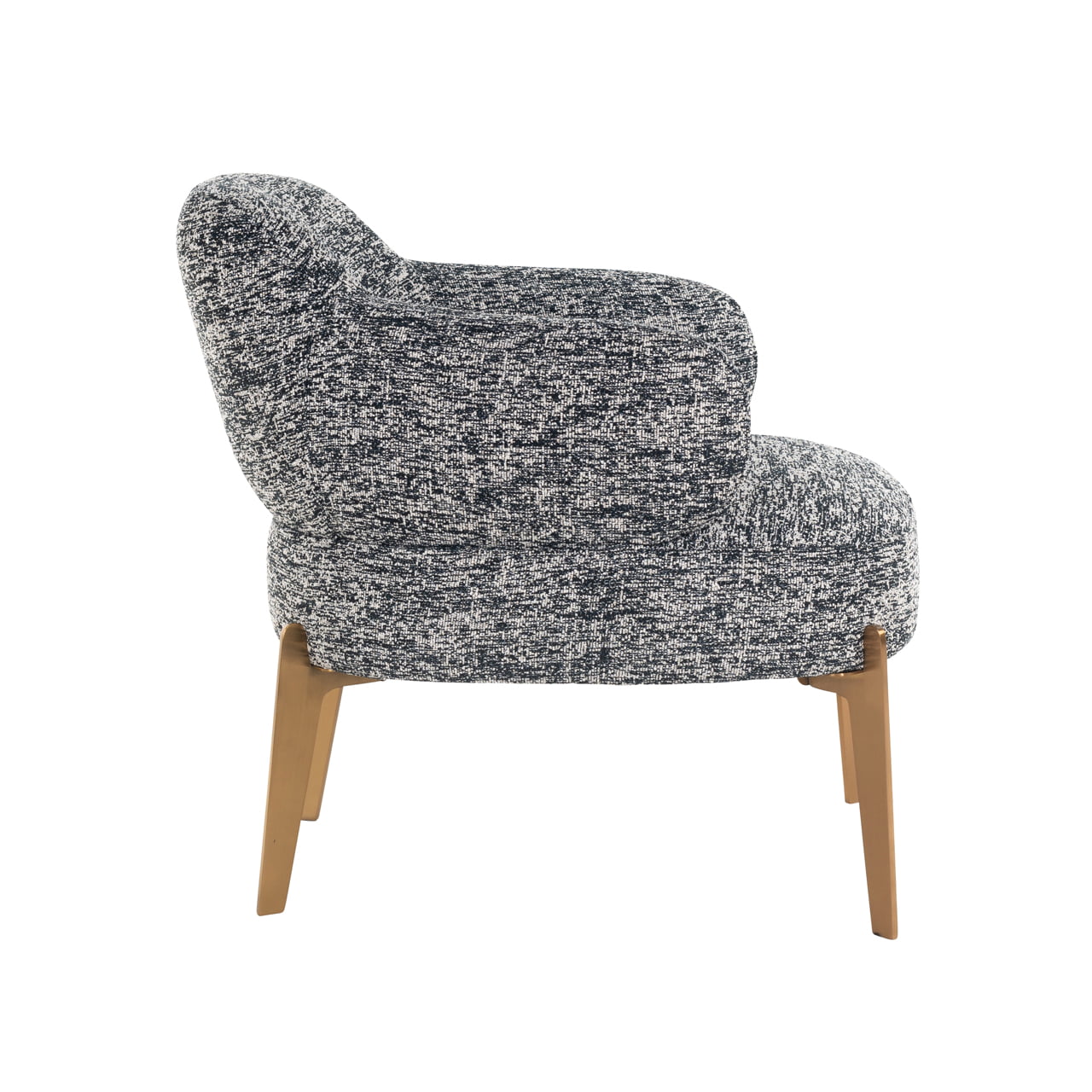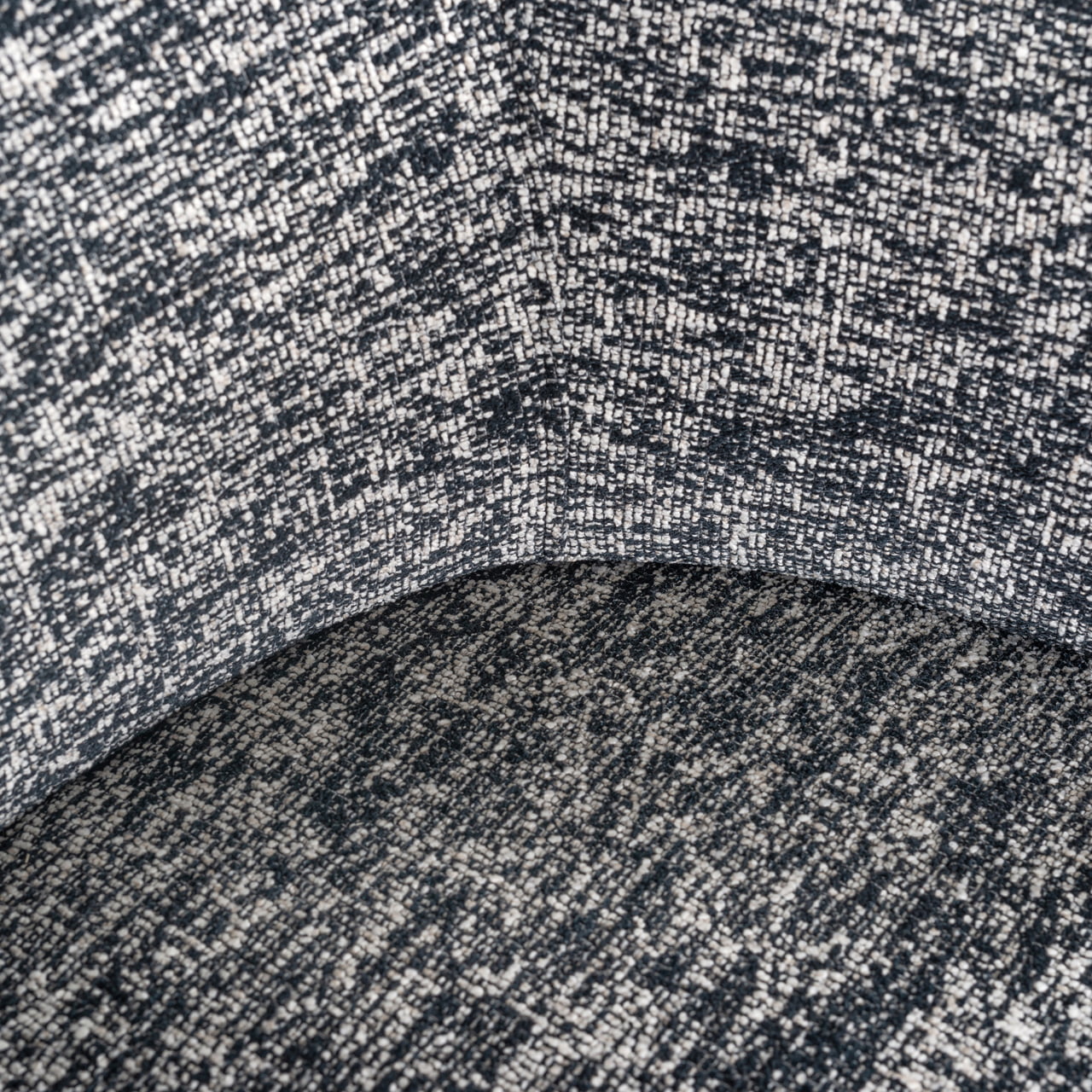 De zwarte boho stof heeft een opvallend gemêleerd patroon en is grof geweven, waardoor het een levendige en textuurrijke look heeft. Het voegt een speels en nonchalant element toe aan de fauteuil en geeft je interieur een onderscheidend karakter.